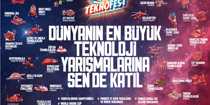 Cumhuriyetimizin 100. yılında yılında İzmir, Ankara ve İstanbul’da düzenlenecek olan TEKNOFEST Havacılık, Uzay ve Teknoloji Festival’inde bu sene toplam 102 alt kategoride 41 farklı teknoloji yarışması gerçekleştirilecek.